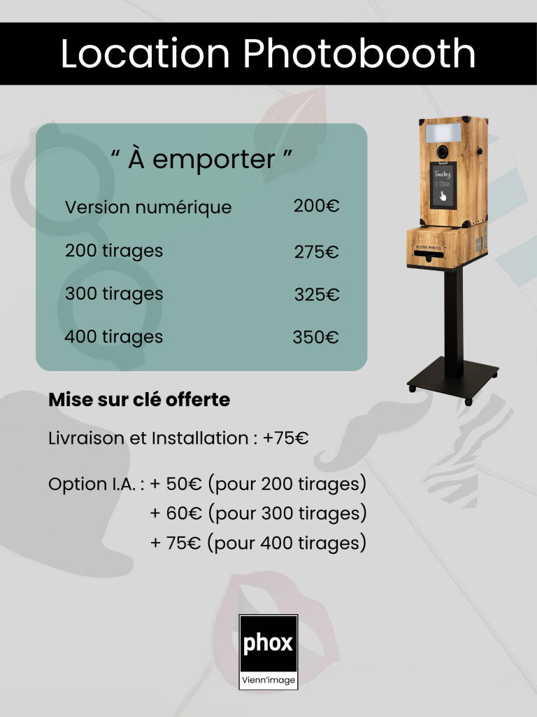 Borne à selphie / photobooth Pour tous vos évènements festifs ou professionnels anniversaire mariage fête de famille entreprises associations / collectivités L'animation qui fera toute la différence tarifs Possiblité de louer également une borne miroir et / ou 360° Renseignez-vous